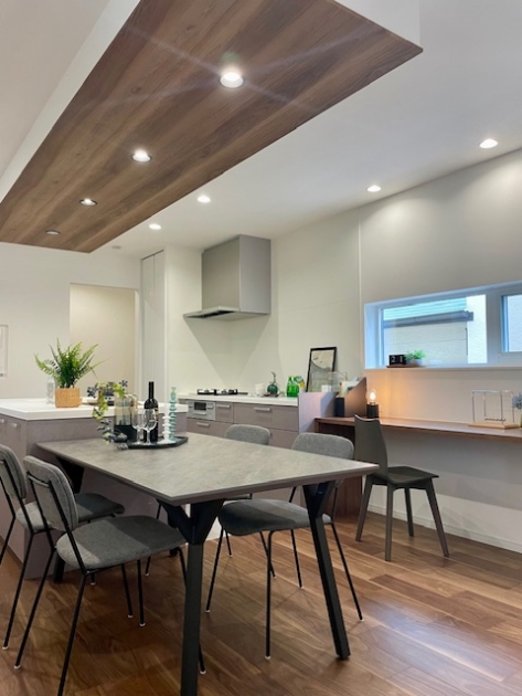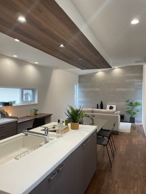 キッチン横にはカウンターがあるので、家事スペース、リモートワーク、お子さまの勉強机、と